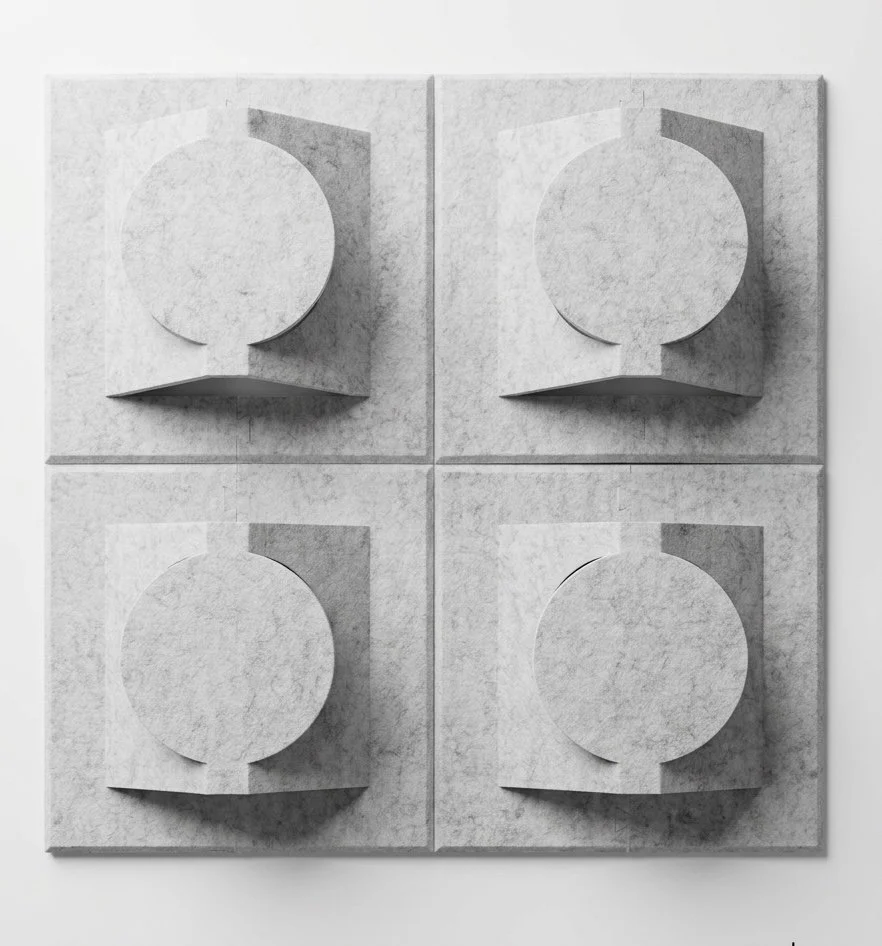 Panel acústico rígido, fabricado a partir de botellas de plástico recicladas consumidas en México, diseñado brindar textura a tus acabados con la mejor absorción de ruido para hacer tus espacios mas comodos